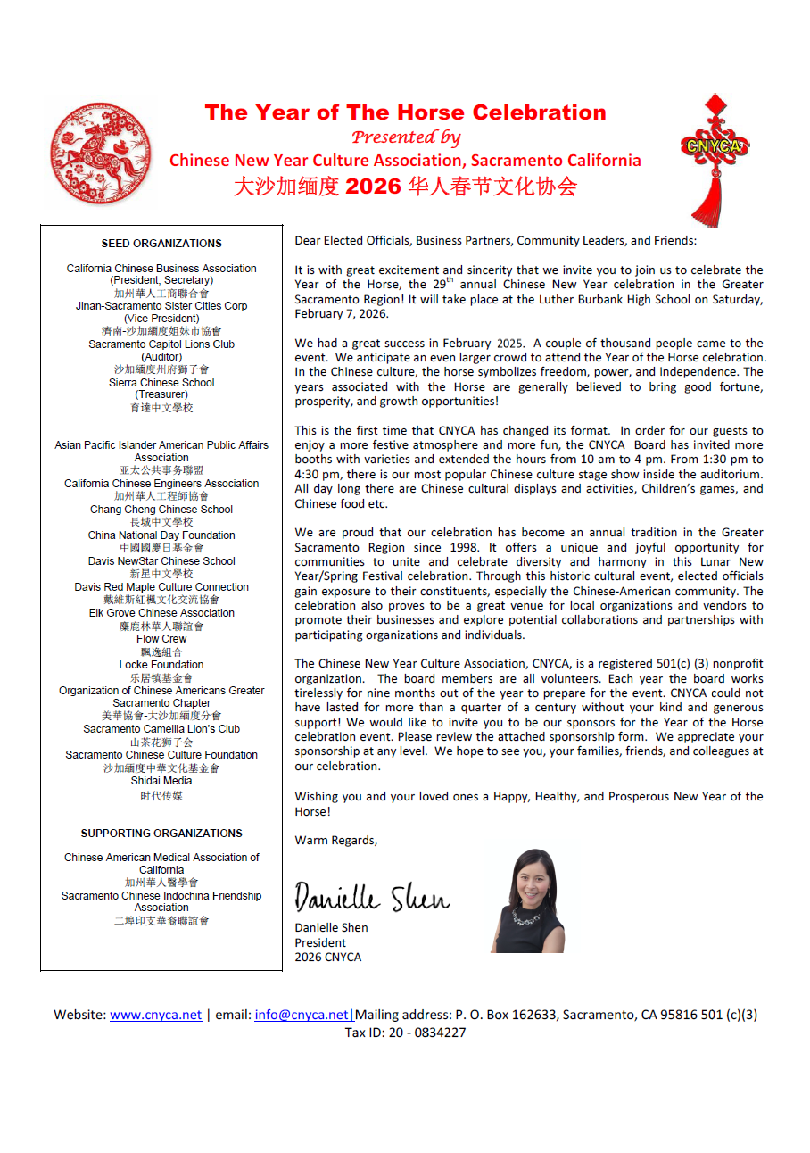 CA Governor: Gavin Newsom's Letter Kevin McCarty's Letter Stephanie Nguyen's Letter Download 2026 Sponsorship Form 2026 CNYCA Stage Program Registration Form & Guideline